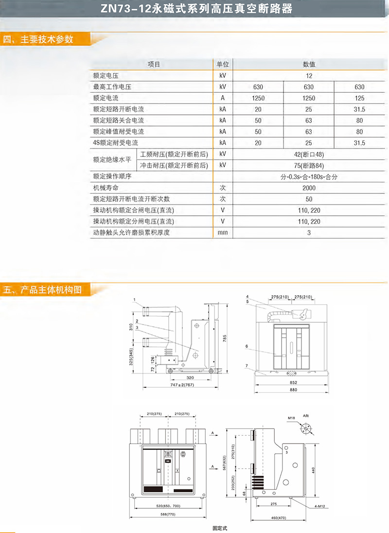 ZN73-12永磁式系列高壓真空斷路器